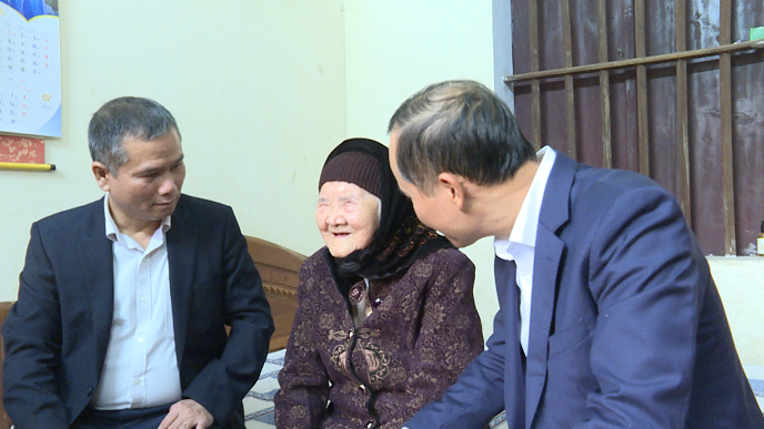 Đồng chí Mai Sơn và đoàn công tác đã đến thăm, tặng quà Mẹ Việt Nam anh hùng Nguyễn Thị Cược (Tổ dân phố Hoàng Xá)